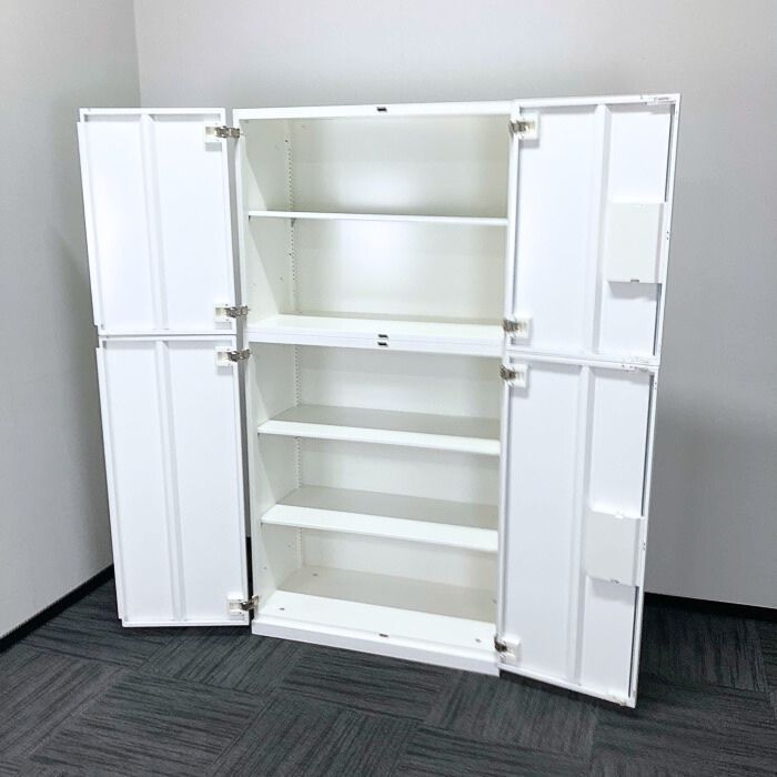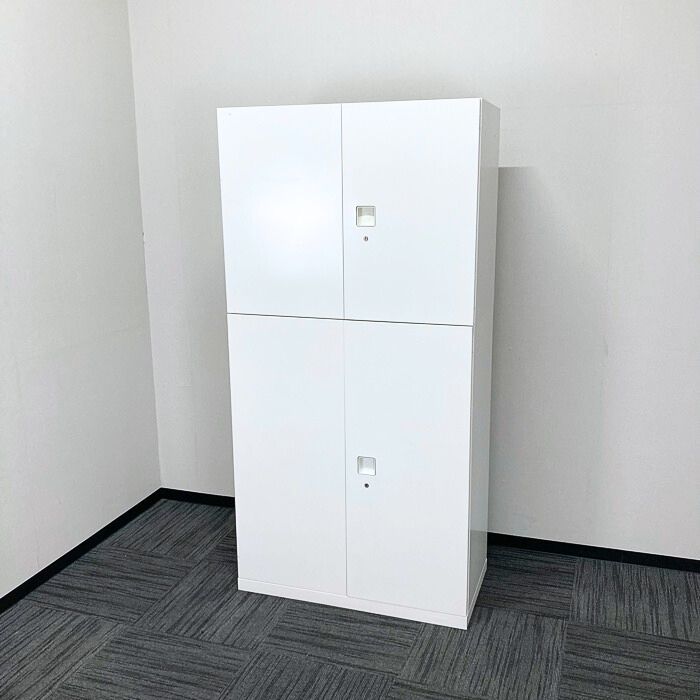 オカムラ レクトラインシリーズ 両開き書庫+両開き書庫 W900×D450×H1810 ネオホワイト 2017~2018年製 中古 ⑩