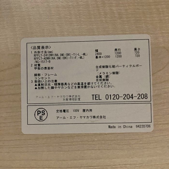 アール・エフ・ヤマカワ フリーアドレスデスク RFFLT-4812 W4800×D1200×H720 天板:ナチュラル/脚:ブラック 中古 ⑩