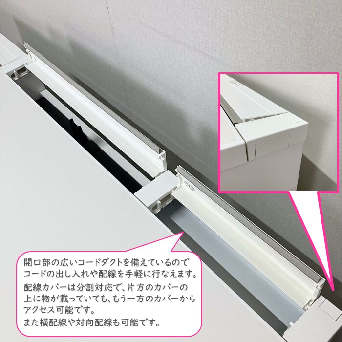 天板後方に分割されたダクトカバーを備え配線類をまとめて整理できます。