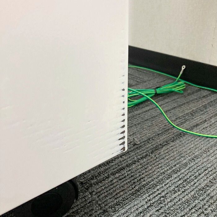 従来のくず箱はくずが溜まるとくず袋を上に持ち上げて取り出しました。くずが満杯の場合かなりの重量となり、取り出すのが大変でしたが、くず箱のフロント面が開閉可能な構造になり、持ち上げずにくず袋の交換ができ、作業の簡易化を実現しました。