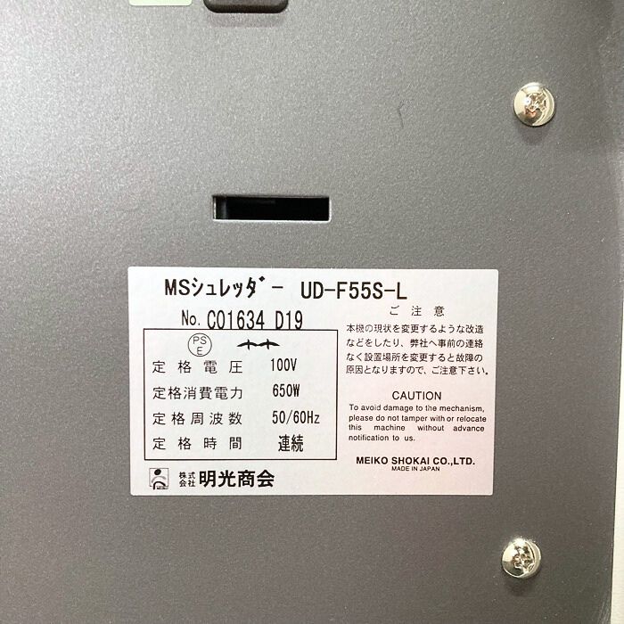 明光商会 MSシュレッダー UD-F55S-L サイズ:W500×D500×H850 質量:97kg ホワイト 2019年製 中古 ※SALE品