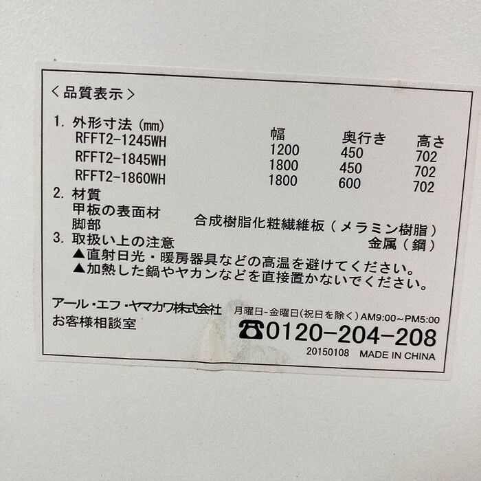 アールエフヤマカワ シンプルフォールディングテーブルⅡシリーズ サイドスタックテーブル RFF2-1860 WH W1800×D600×H702 ホワイト 中古 ⑳