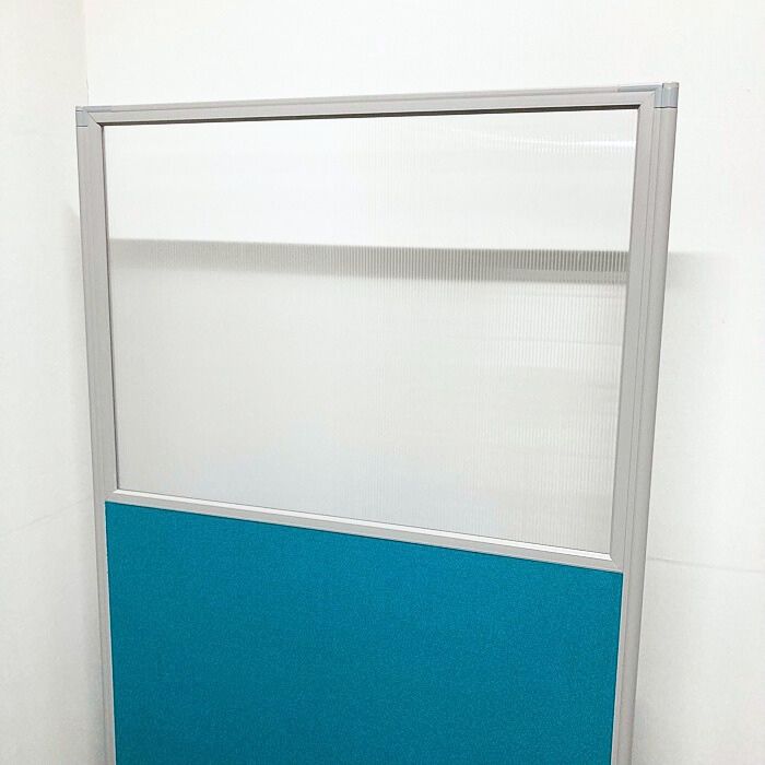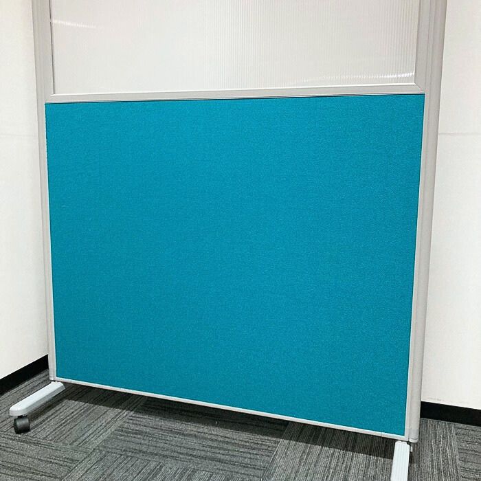 キャスター付きローパーティション W1190×D420×H1850 クリア/グリーン 中古