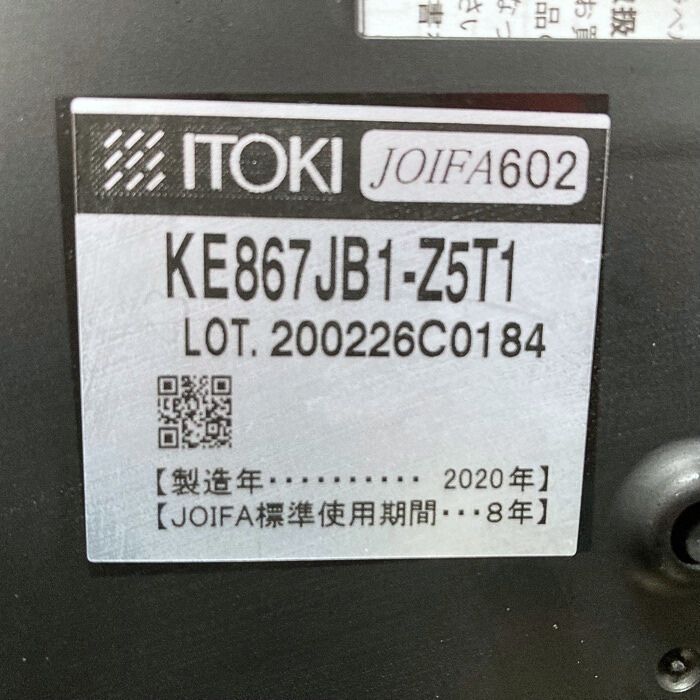 イトーキ ヴェントチェアシリーズ タスクチェア KE-867JB1-Z5T1 アジャスタブル肘 ブラック 2020年製 中古