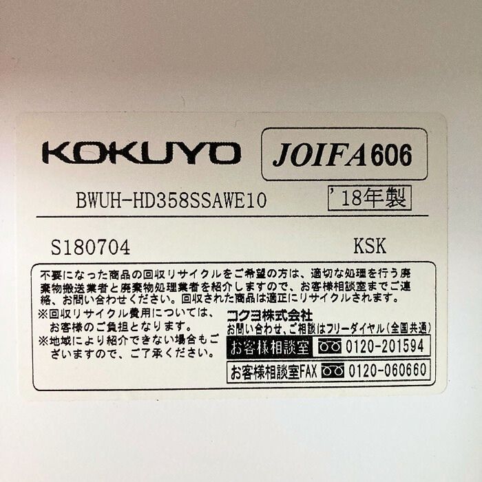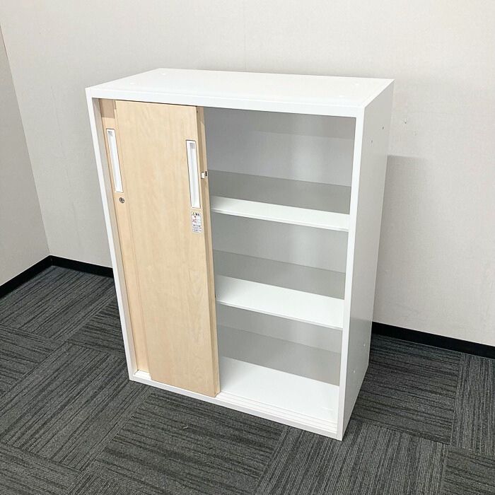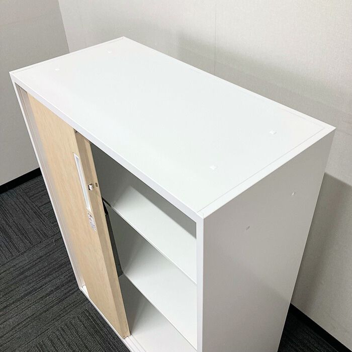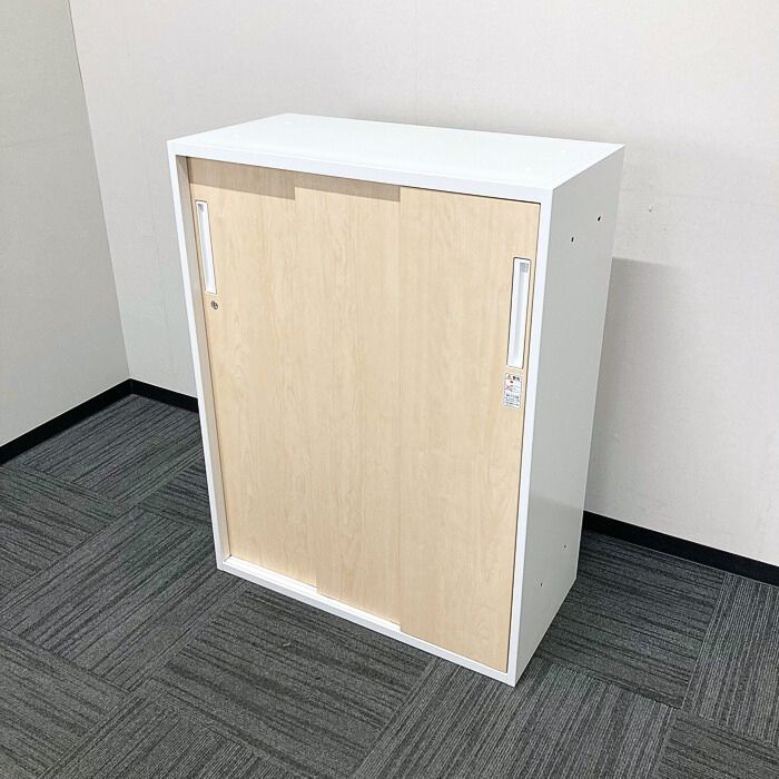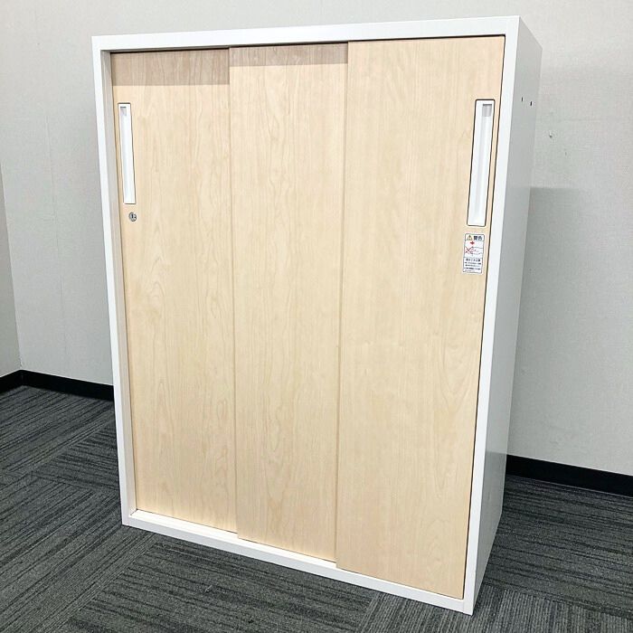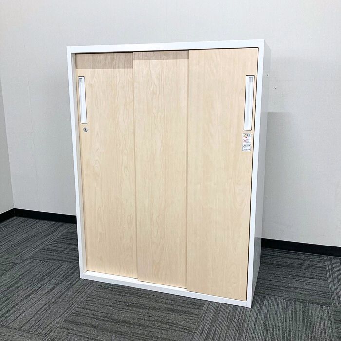 コクヨ エディア〈木目タイプ〉シリーズ 3枚引違い戸 BWUH-HD358SSAWE10 W800×D400×H1050 扉:ホワイトナチュラル/本体:ホワイト 2018年製 中古 ※ベースなし