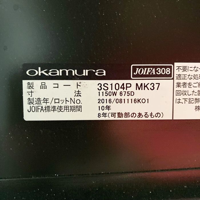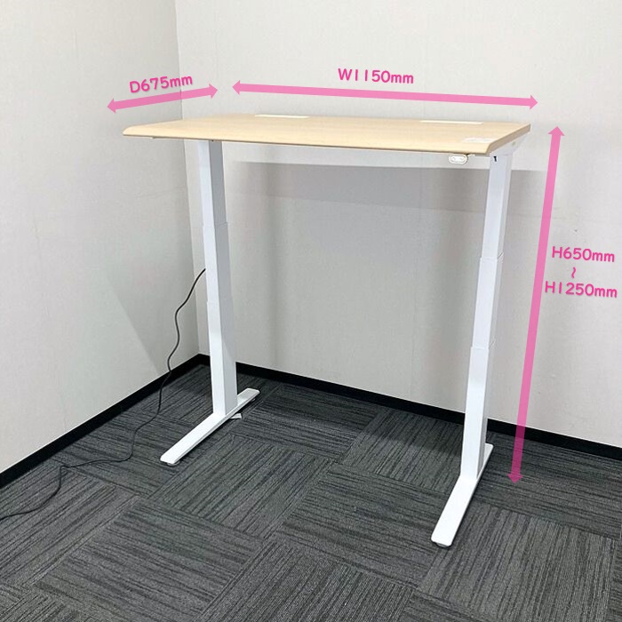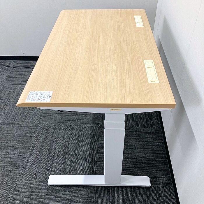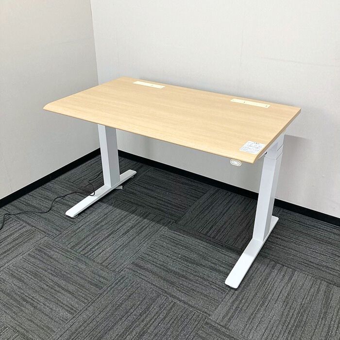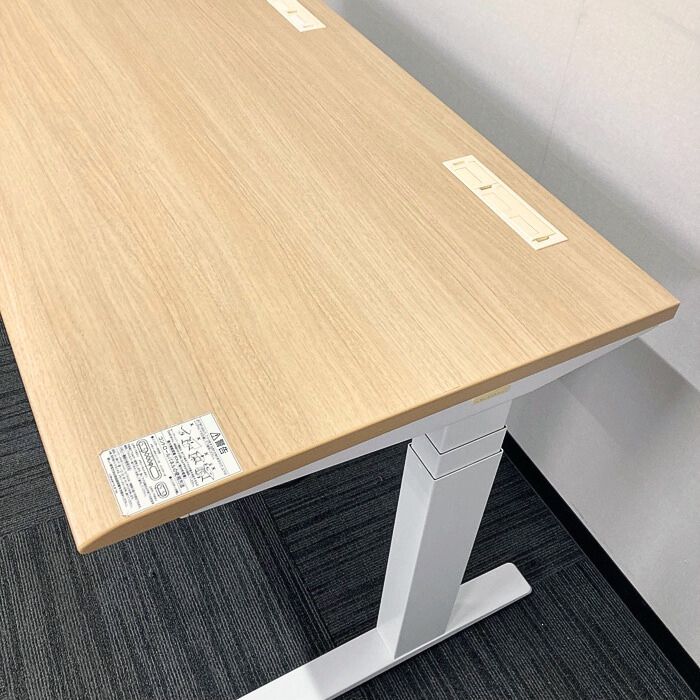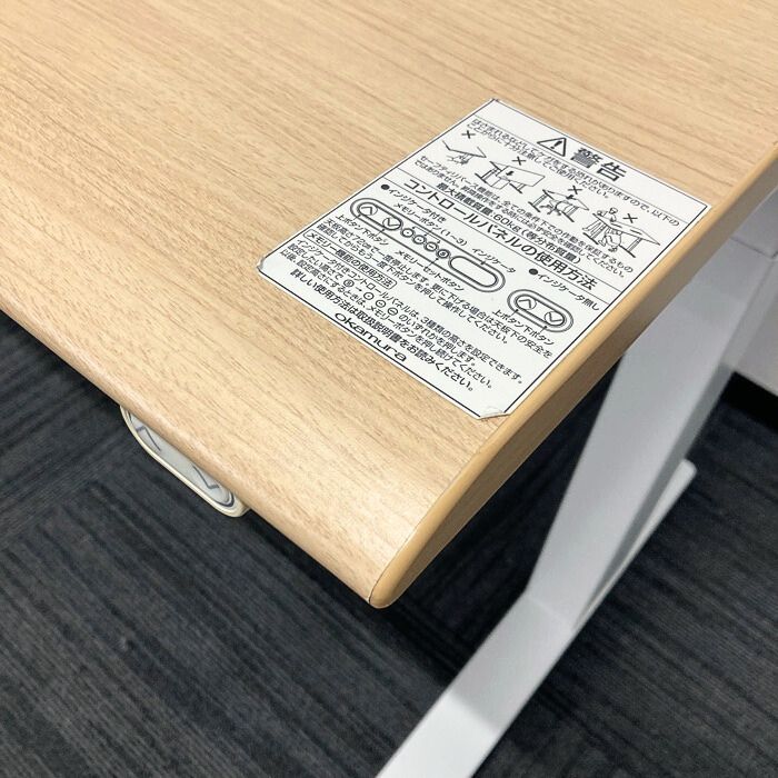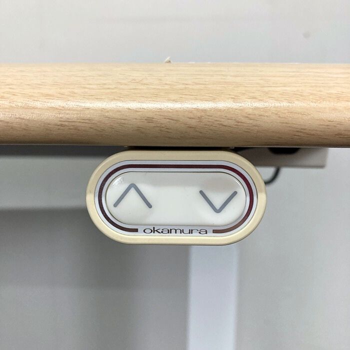 オカムラ スイフトシリーズ 電動天板昇降デスク 3S104P MK37 W1150×D675×H650~1250 天板:ネオウッドライト/脚:ネオホワイト 2015~16年製 中古 ⑩