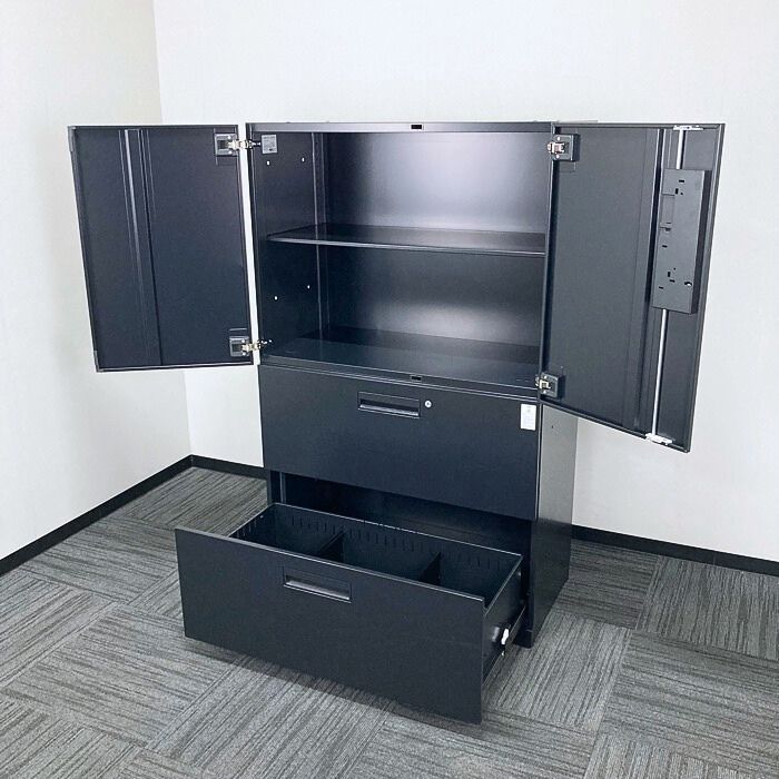 コクヨ エディアシリーズ 両開き書庫+ラテラルキャビネット W900×D450×H1464 ブラック 2020年製 中古 ⑩