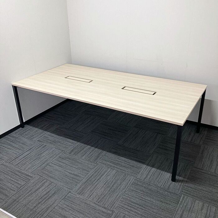 オカムラ アプションフリー2シリーズ 大型ミーティングテーブル 3YAJNP MX61 W2400×D1200×H720 天板:プライズウッドライト/脚:ブラック 2019年製 中古 ⑩