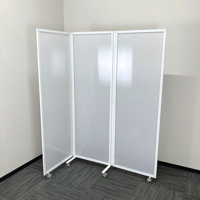 サンワダイレクト 3連パーティション W1800×D400×H1800 パネル:半透明/フレーム:ホワイト 中古