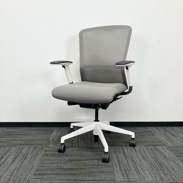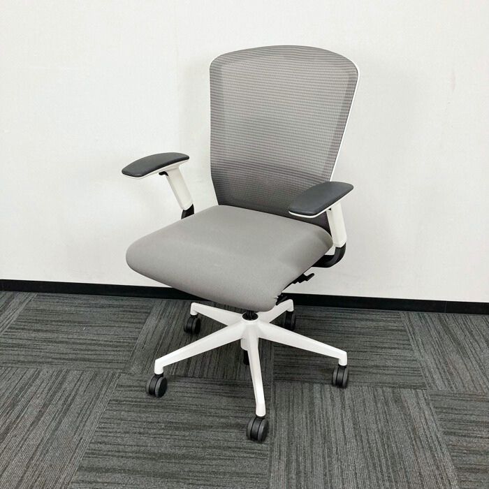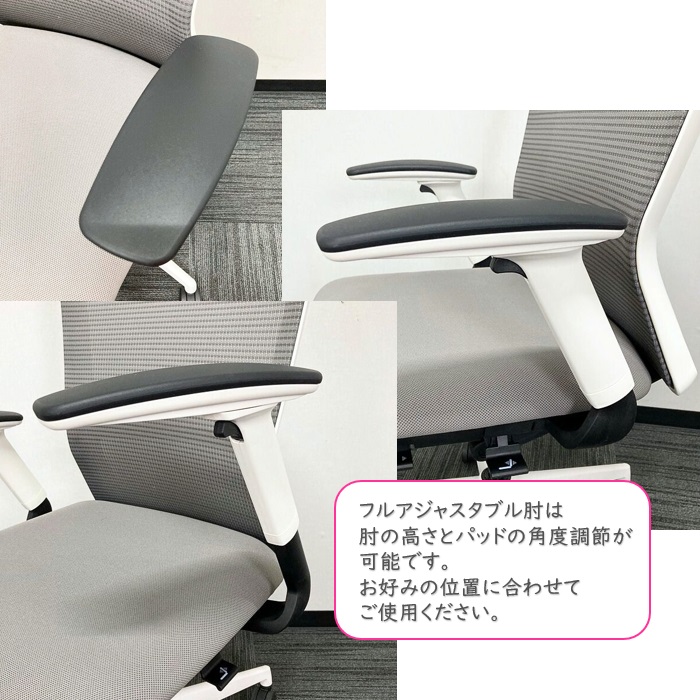 内田洋行 エルフィチェアシリーズ オフィスチェア[フルアジャスタブル肘] ハイバック ホワイトグレイ 2019年製 中古 ⑩