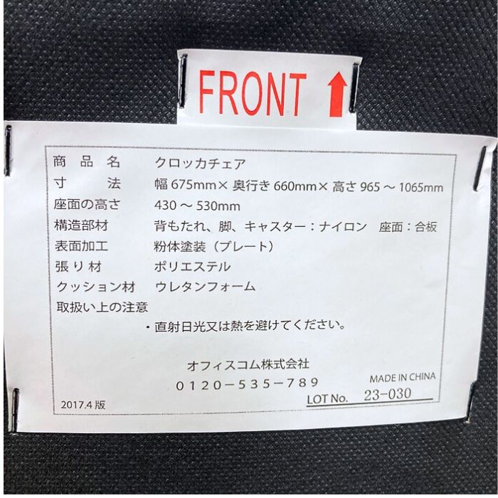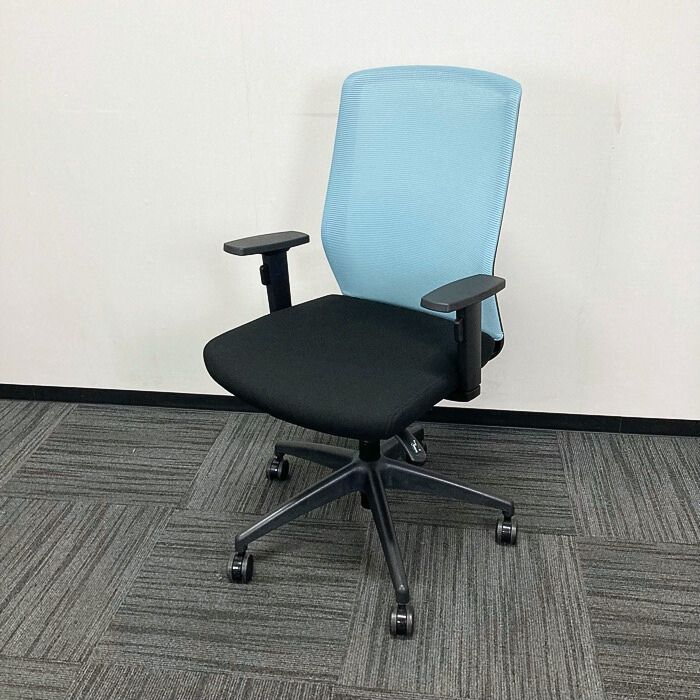 オフィスコム クロッカチェアシリーズ オフィスチェア肘あり 背:ブルー/座:ブラック 中古 ⑳
