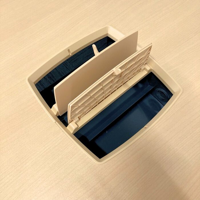 天板中央に配線カバーがあり、四方どこからでも電源へアクセス可能です。