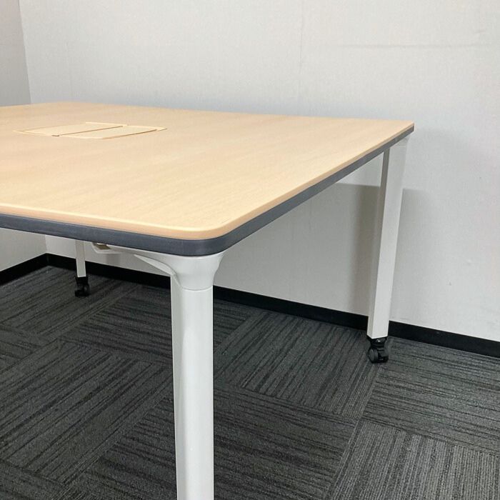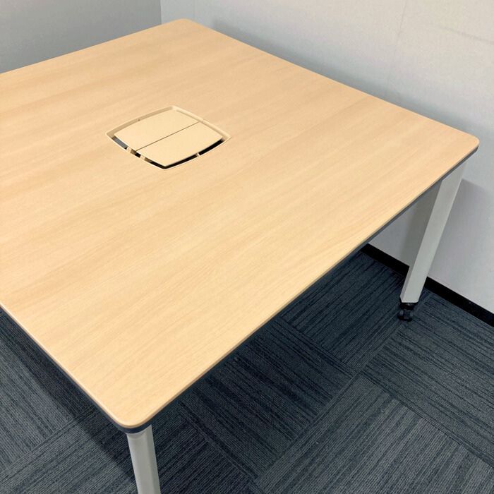 プラス グループテーブル PX-T1212-S WN W1200×D1200×H720 天板:ナチュラル/脚:ホワイト 2015年製 中古 ⑳