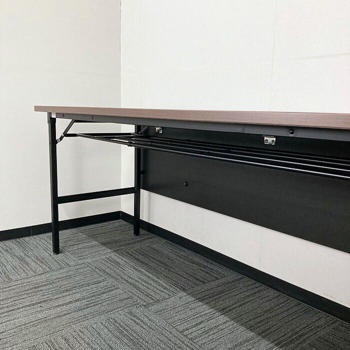 オカムラ Kタイプシリーズ 折りたたみテーブル[幕板付き] 8186LQ MX63 W1800×D600×H720 天板:プライズウッドダーク/脚:ブラック 2023年製 未使用品