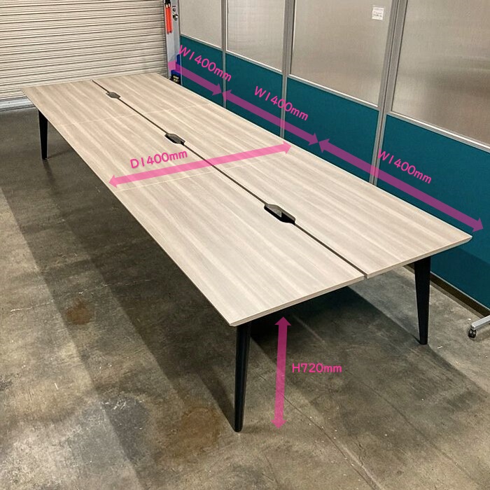 オカムラ ライブスシリーズ フリーアドレステーブル 3G117P MX62 W4200×D1400×H720 天板:プライズウッドミディアム/脚:ブラック 2022年製 中古 ⑩