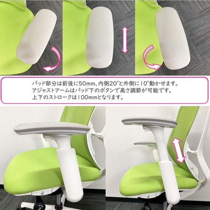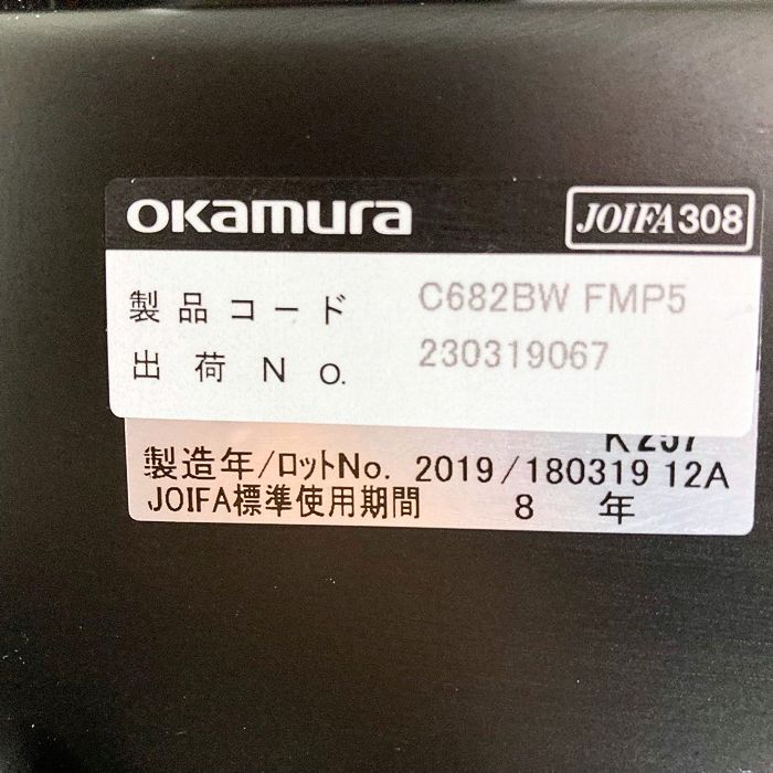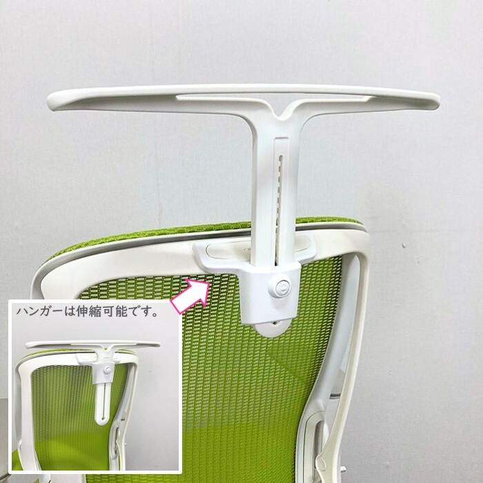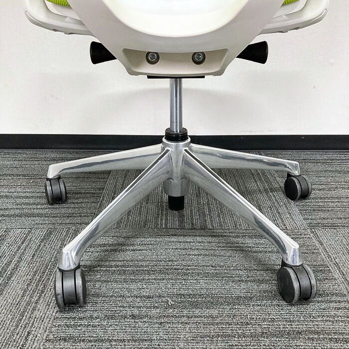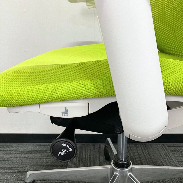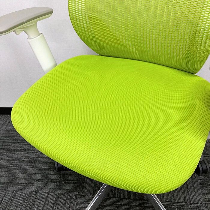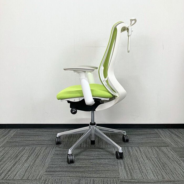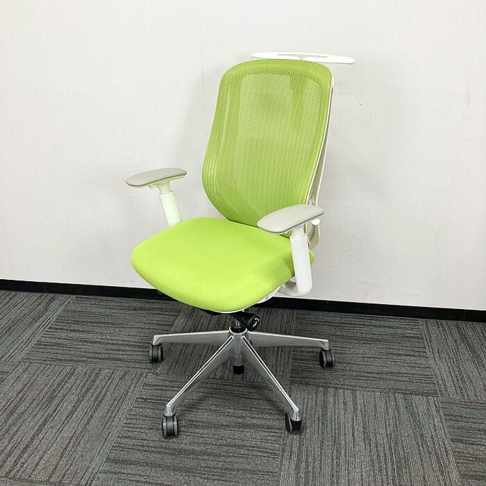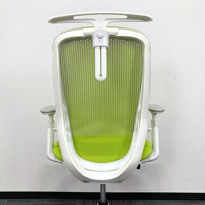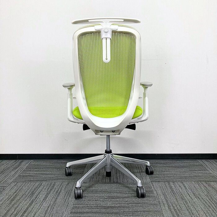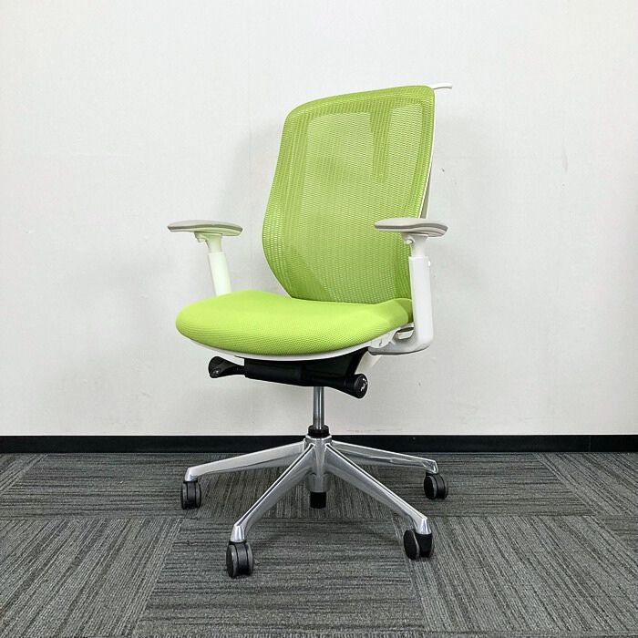 オカムラ シルフィーチェアシリーズ オフィスシーティング C632BW MP5 ホワイトフレーム ハイバック ハンガー付き アジャストアーム付き 背/座:ライムグリーン 2019年製 中古