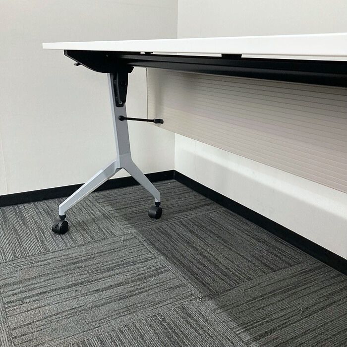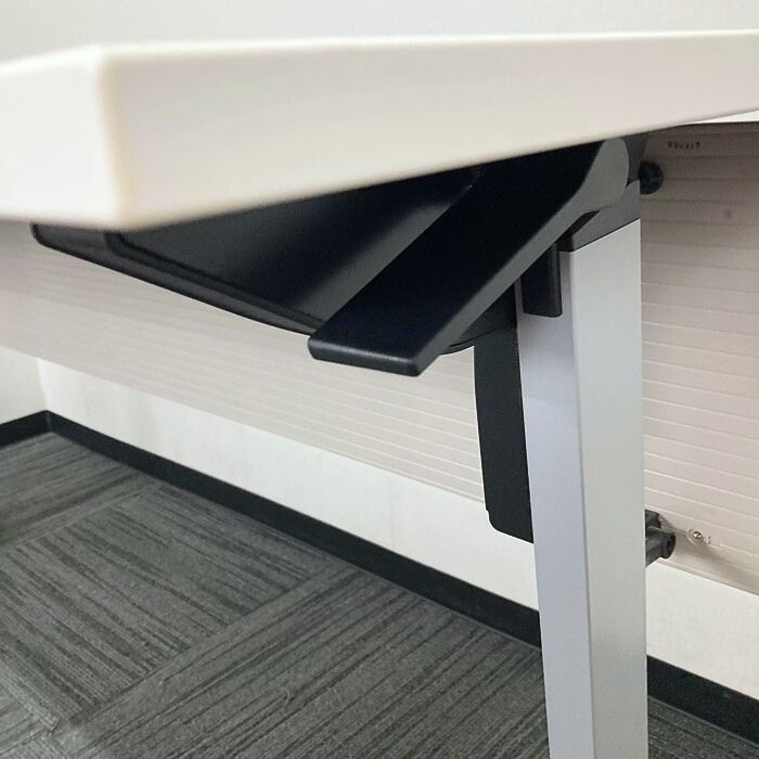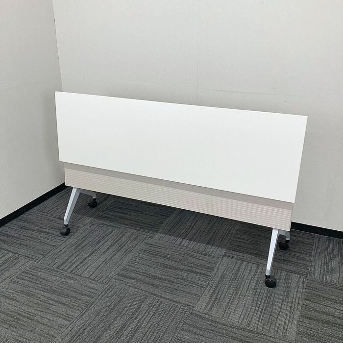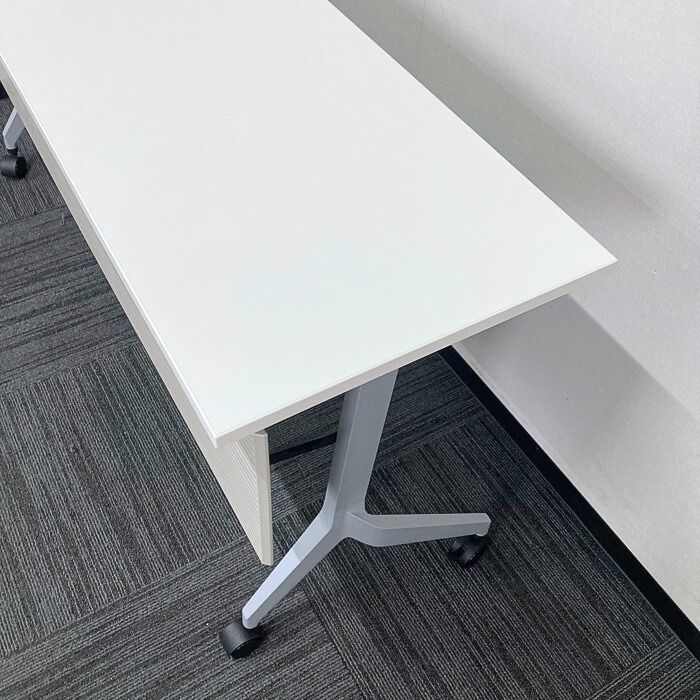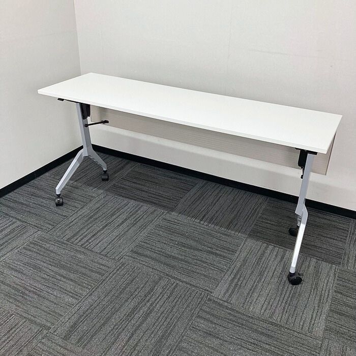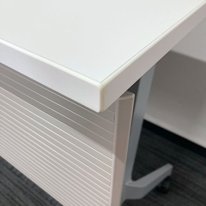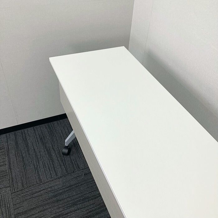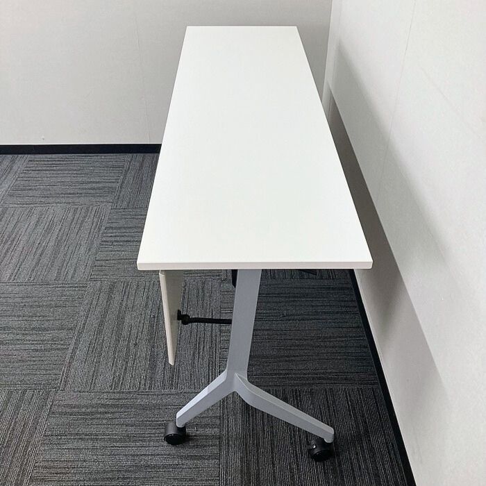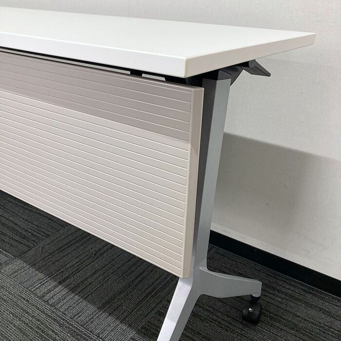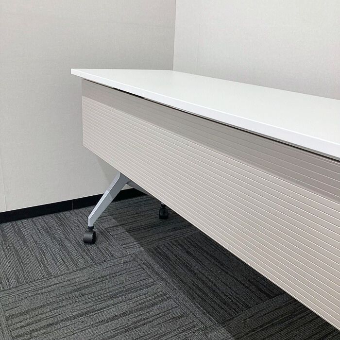 内田洋行 パラグラフシリーズ 平行スタックテーブル W1800×D450×H720 幕板付き 棚板付 天板:ホワイト/脚:シルバー 2017年製 中古 ⑩
