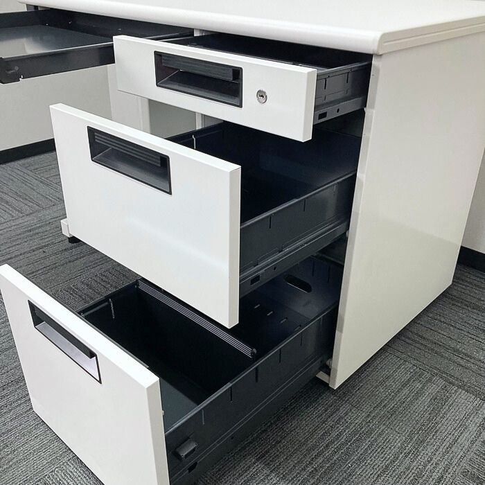 幅1000mmのコンパクトサイズですが、センター引出しと3段右袖でたっぷり収納可能です。