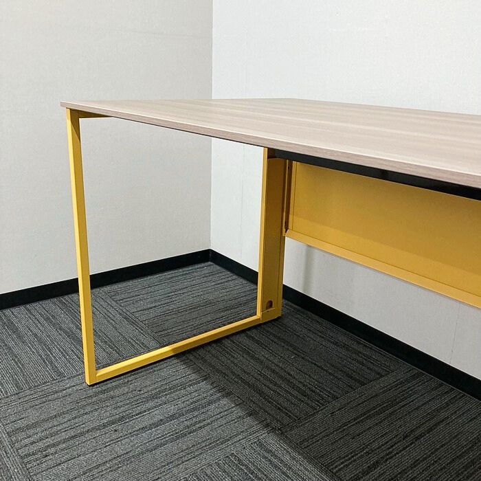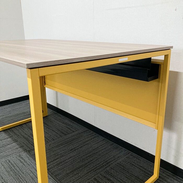オカムラ ソリストシリーズ  ワークデスク 3K1A4P MX62 W1200×D700×H720 天板:プライズウッドミディアム/脚:イエロー 2023年製 中古