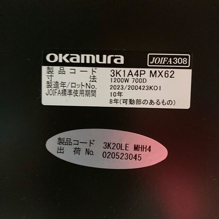 オカムラ ソリストシリーズ ワークデスク 3K1A4P MX62 W1200×D700×H720 天板:プライズウッドミディアム/脚:イエロー 2023年製 中古