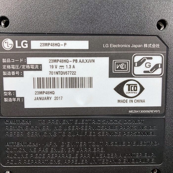 LG 液晶ディスプレイ 23MP48HQ 23インチ フルHD IPS 非光沢 ブルーライト低減機能 2017年製 中古