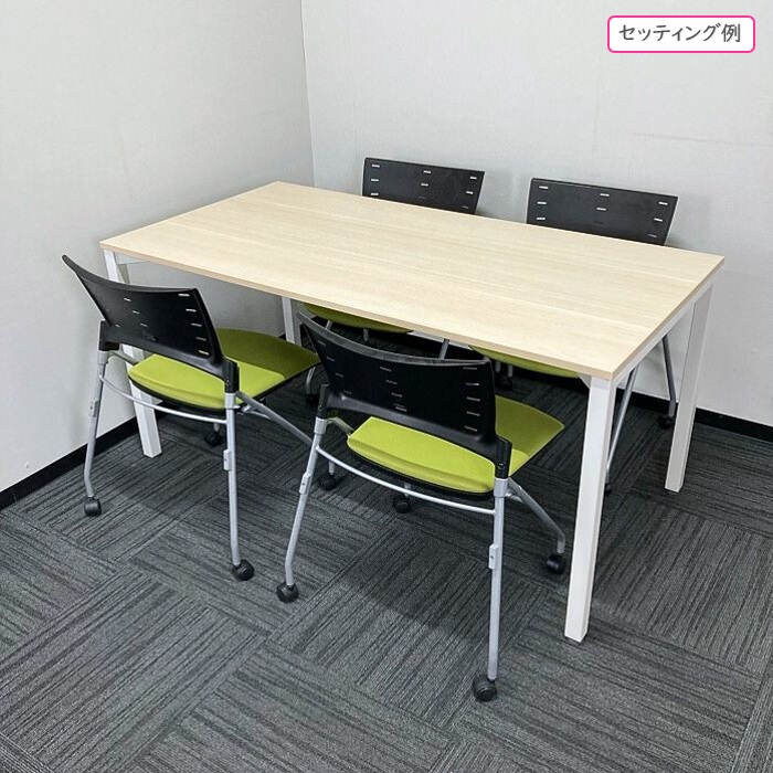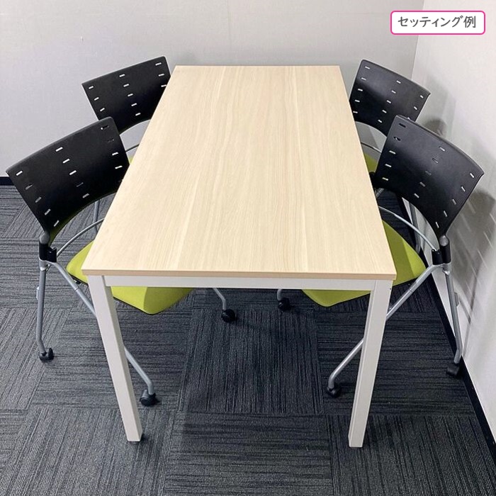内田洋行 ノティオシリーズ ミーティングテーブル W1500×D750×H720 天板:ライトファインウッド/脚:オフホワイト 2022年製 中古 ⑩