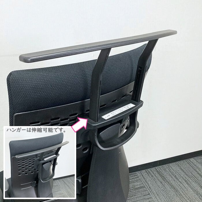 コクヨ ウィザード3チェアシリーズ オフィスチェア[可動肘] CRS-G3622F6 ハンガー付き ブラック 2019年製 中古