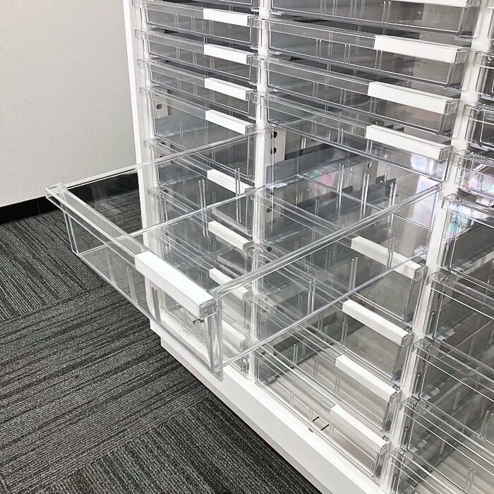 浅型トレイが33段、深型トレイが15段と用途に合わせた使い分けが可能です。