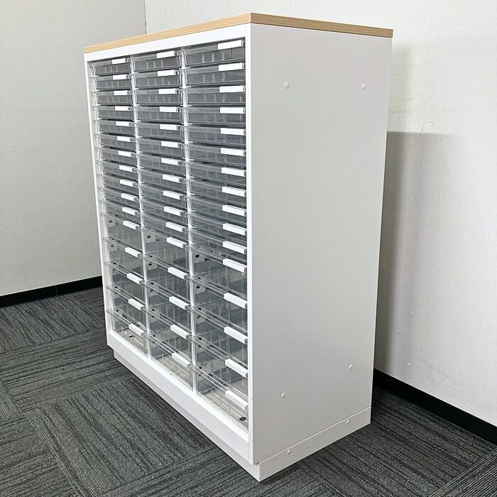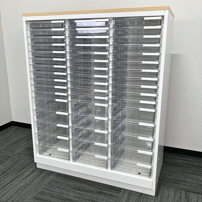 イトーキ シンラインシリーズ クリスタルトレイ[浅型33段/深型15段] HTM-109KAF-W9 W900×D450×H1118 天板:ホワイトオークM/本体:ホワイト 2022年製 中古