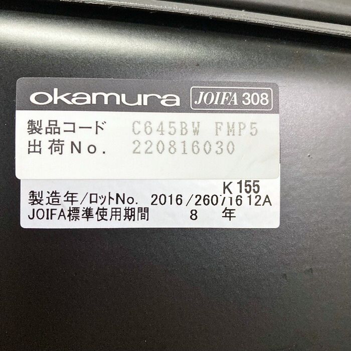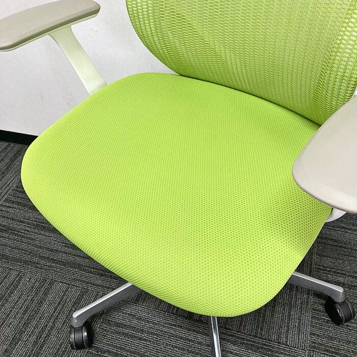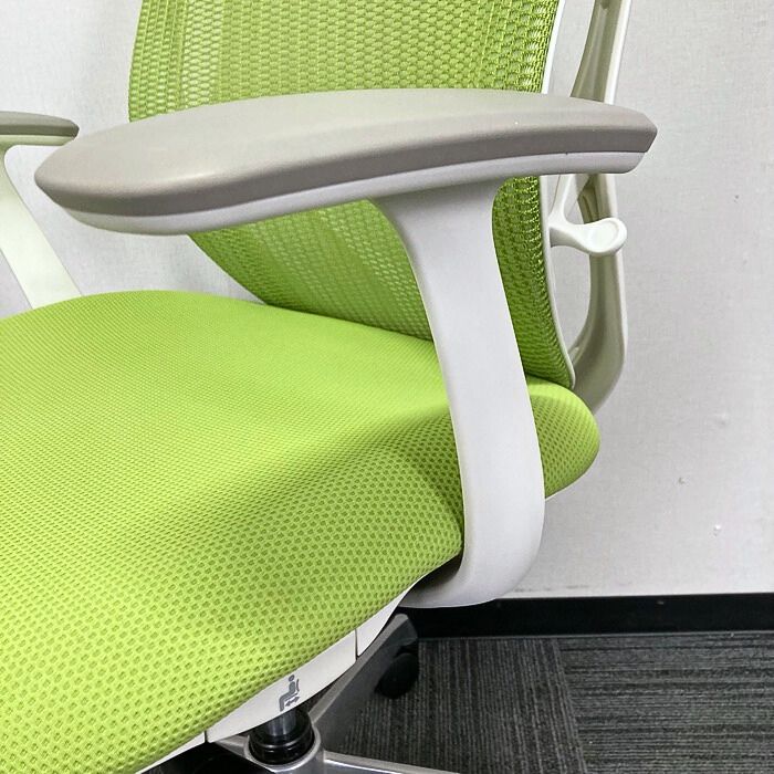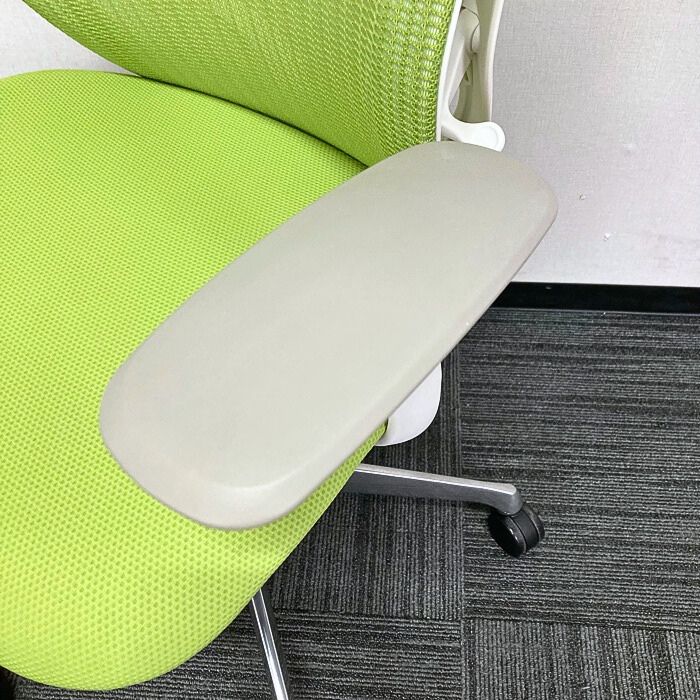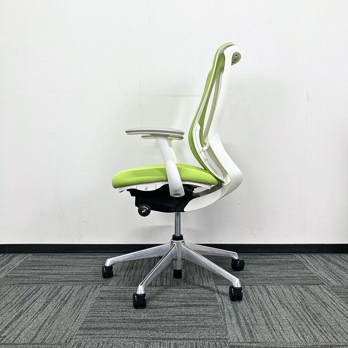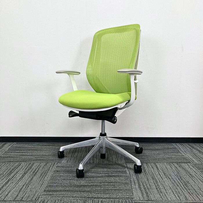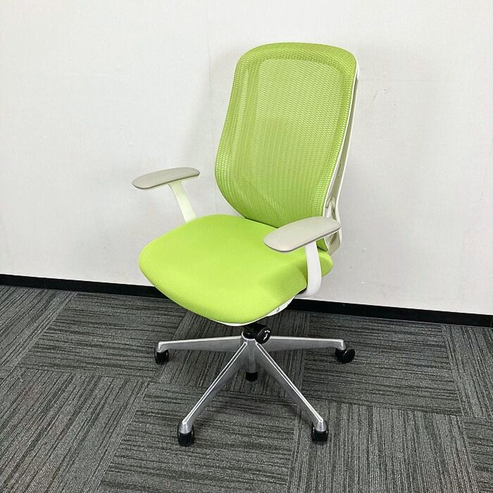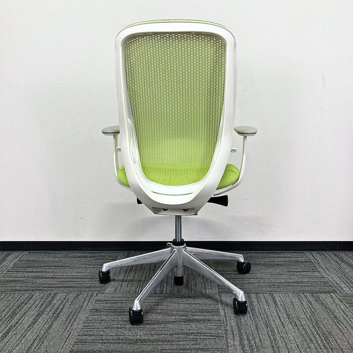 オカムラ シルフィーチェアシリーズ オフィスシーティング C645BW MP5 ホワイトフレーム ハイバック デザインアーム付き 背/座:ライムグリーン 2016年製 中古