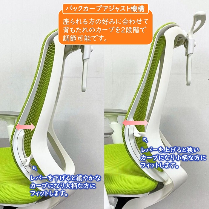 背もたれのカーブを2段階で調節できる新感覚のオフィスシーティング。