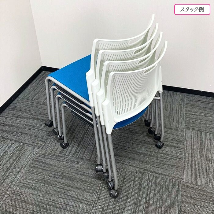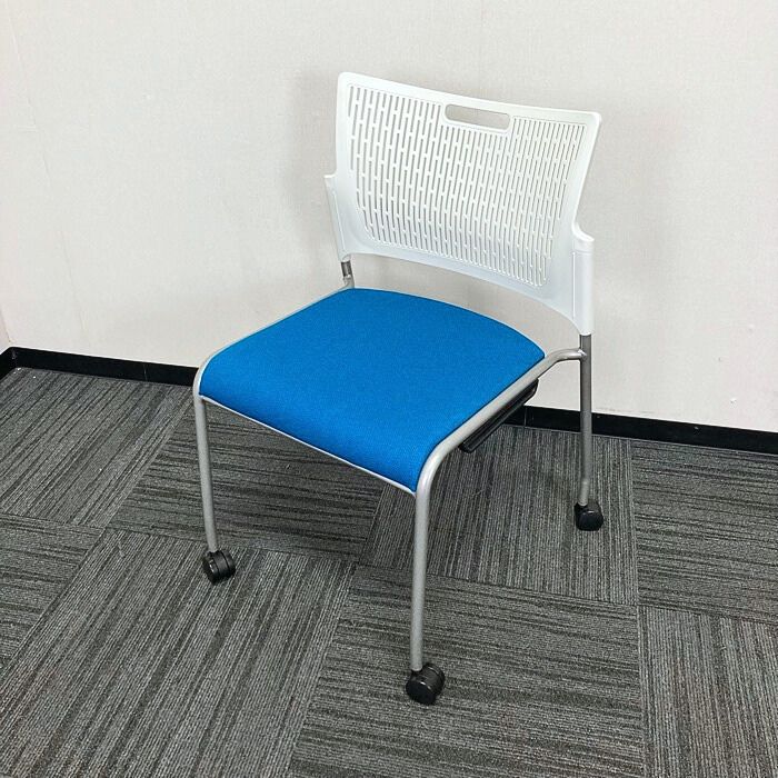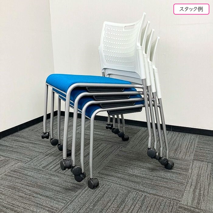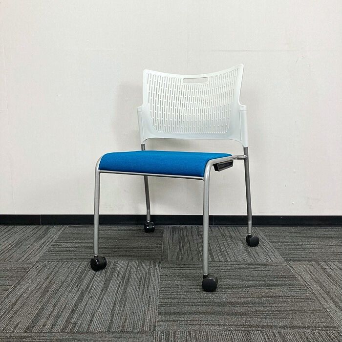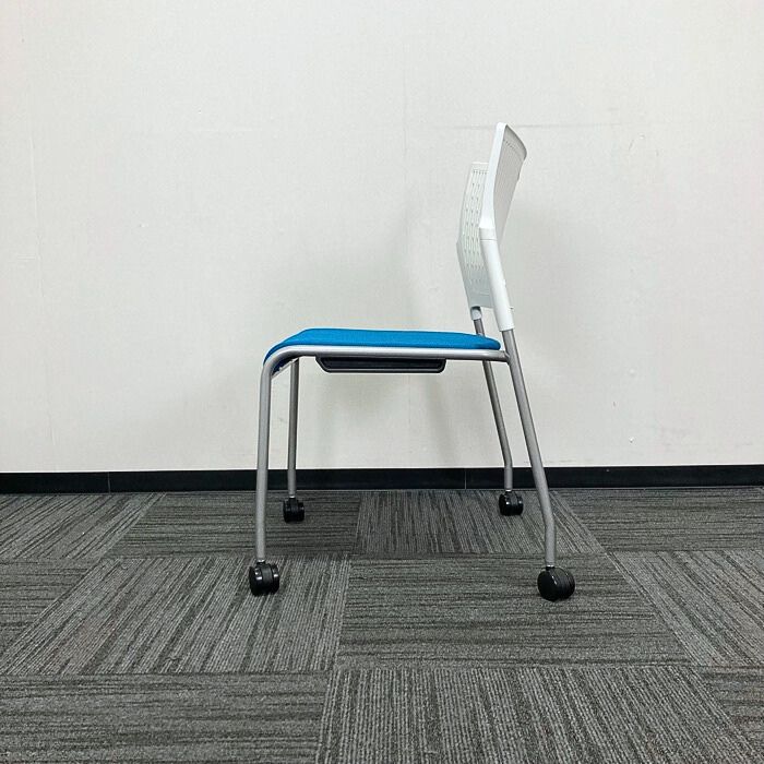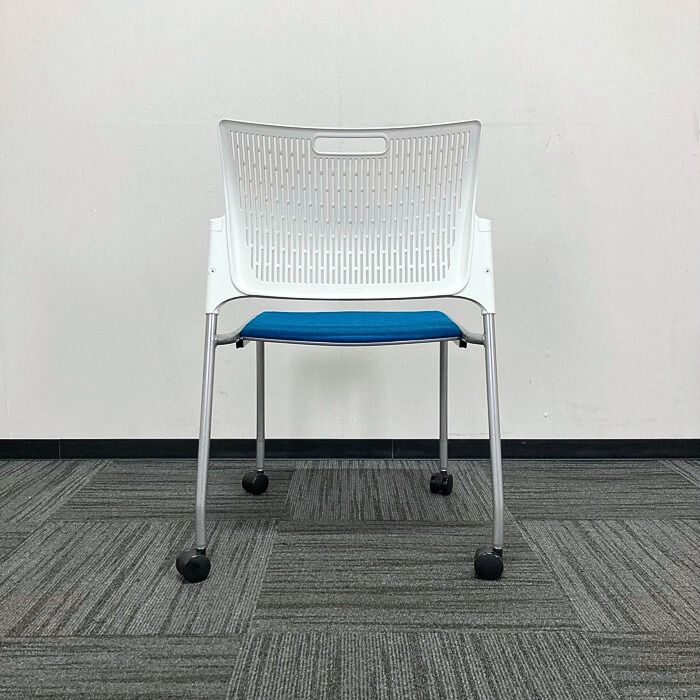 オカムラ レーテチェアシリーズ 会議用チェア 81R2AY FFW5 背:ホワイト/座:ターコイズブルー 2020年製 中古 ⑩