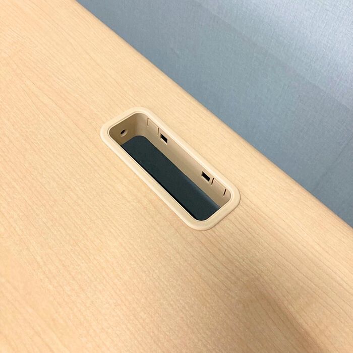 天板後方に配線口が一箇所ありますのでPC配線や電話線の整理も可能です。