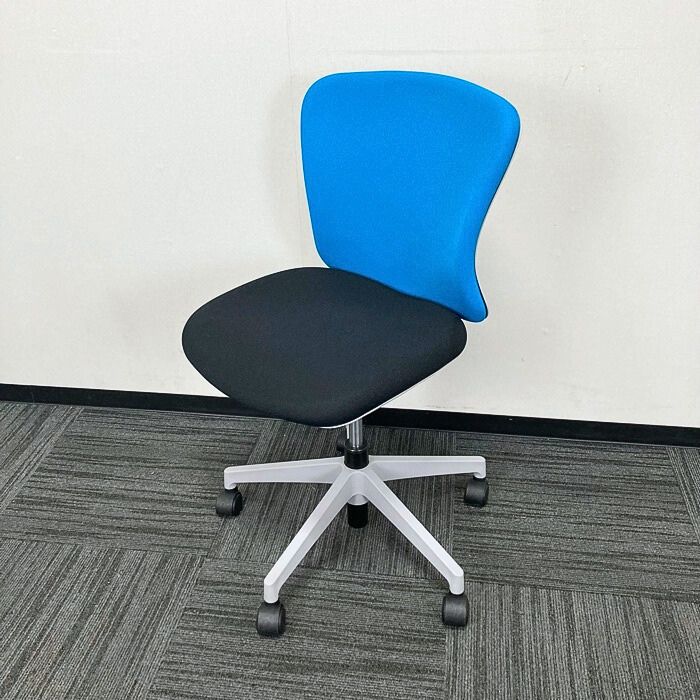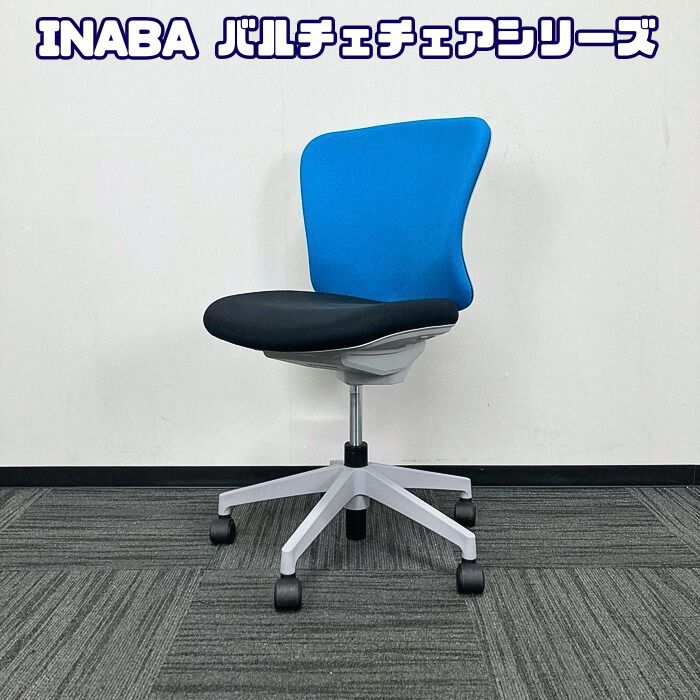 イナバ バルチェチェアシリーズ オフィスチェア ローバック 背:ライトブルー/座:ブラック 2019年製 中古 ※SALE品
