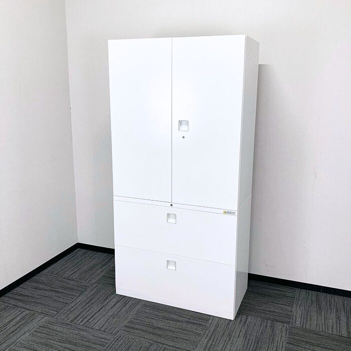 オカムラ レクトラインシリーズ 両開き書庫+2段ラテラル W900×D450×H1810 ネオホワイト 2019~2020年製 中古 ⑩