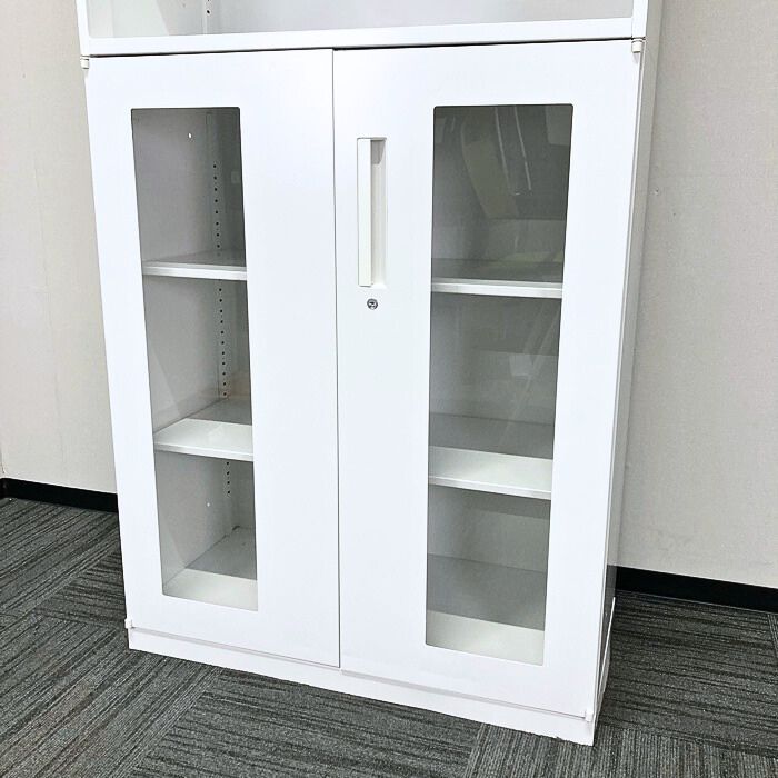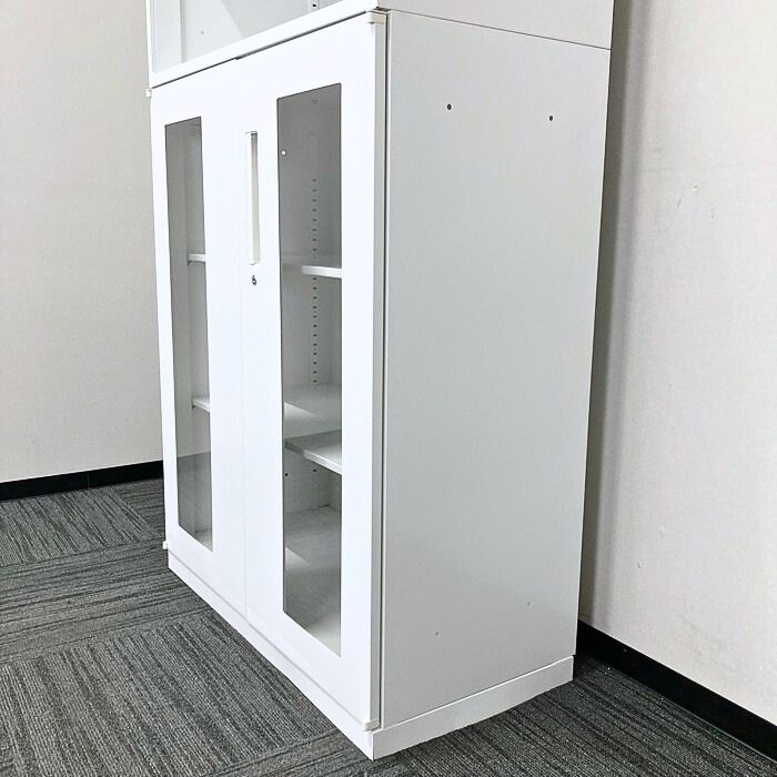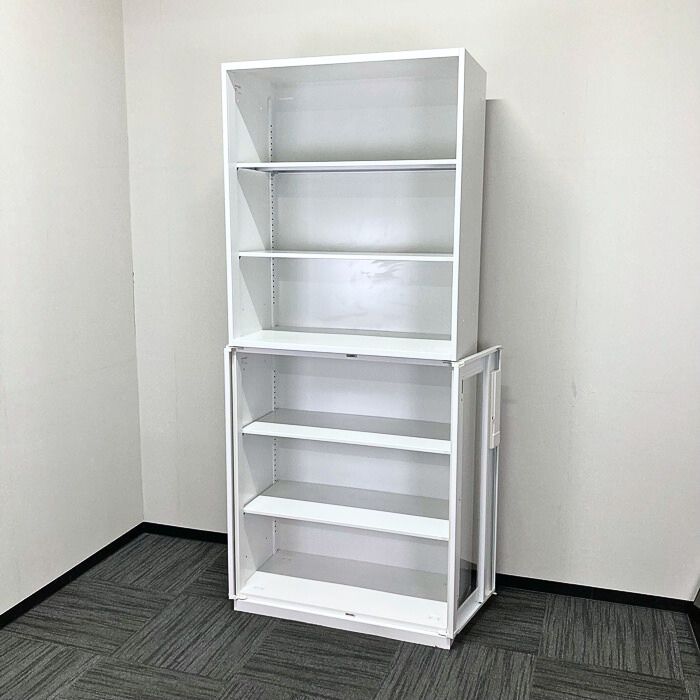 内田洋行 HSシリーズ オープン書庫+透明両開き書庫 W900×D450×H2150 オフホワイト 2021年製 中古