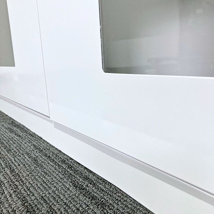 透明両開き書庫の枠下部に浅い凹みありますが目立つものではありません(画像参照)