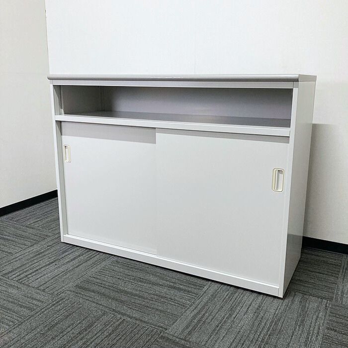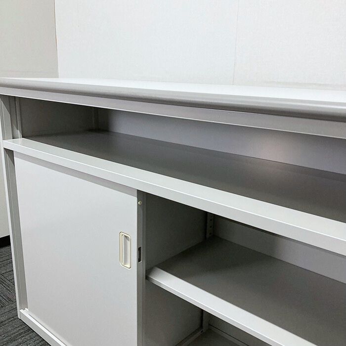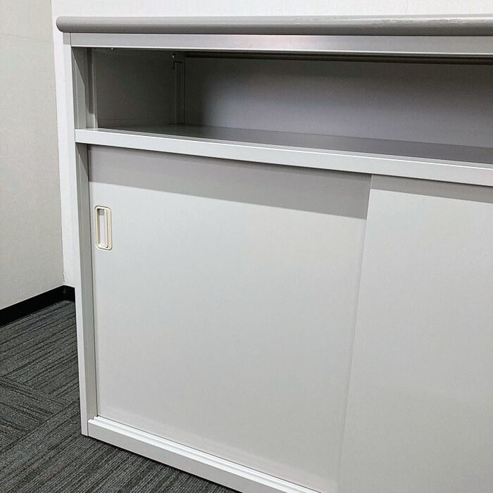 内田洋行 KC-1000Nシリーズ ハイカウンター[棚付き引戸タイプ] W1200×D460×H900 ペールグレイ 2013年製 中古