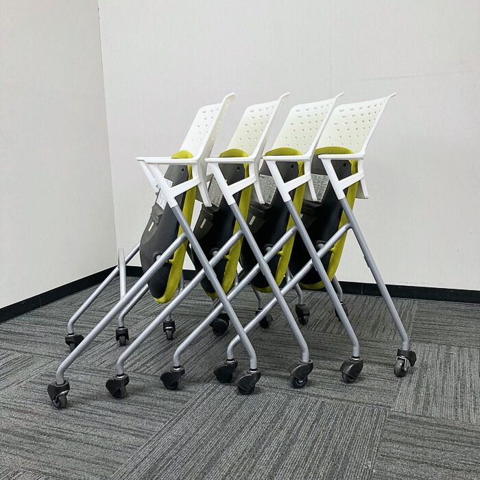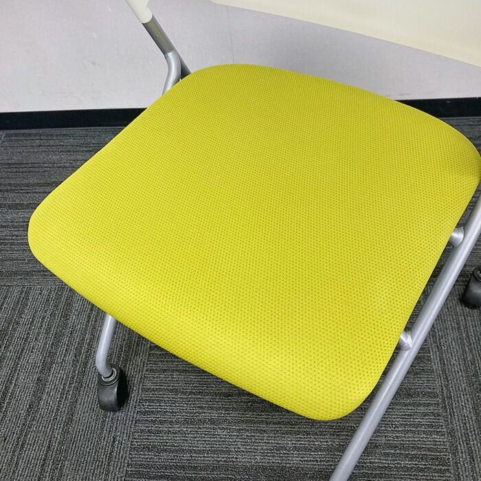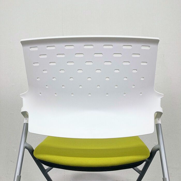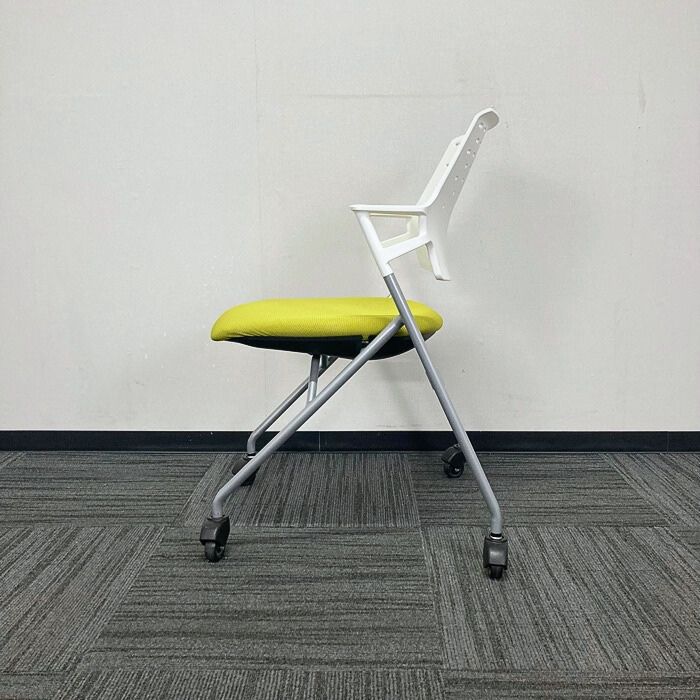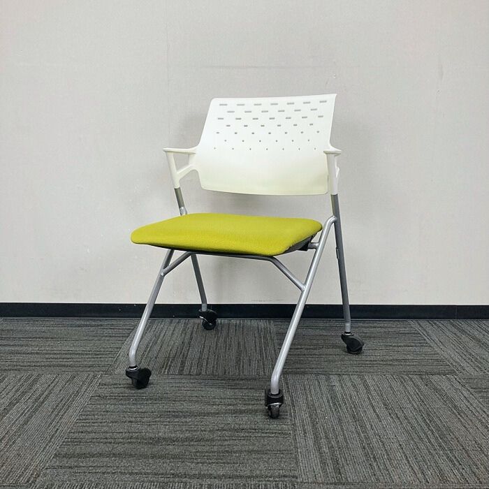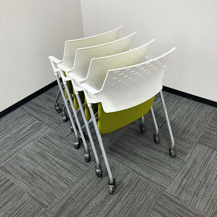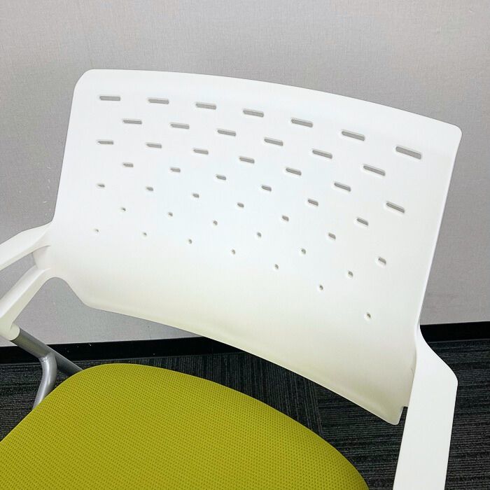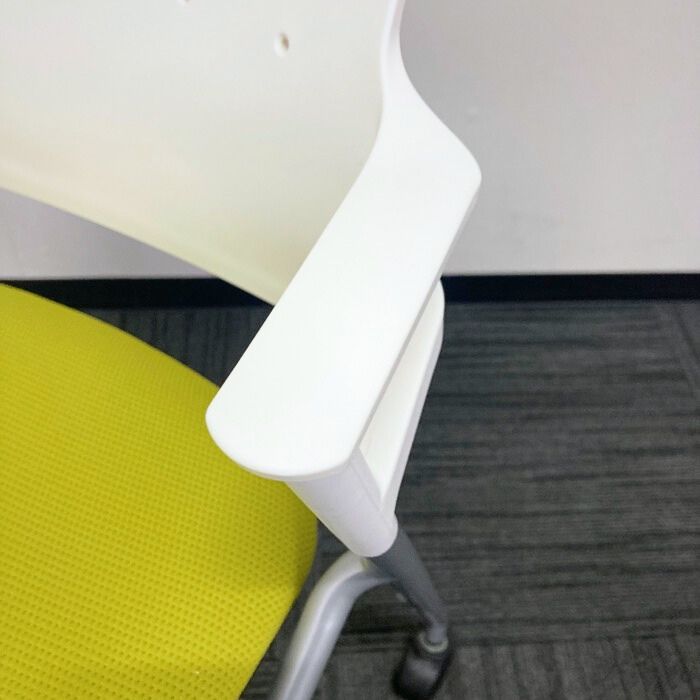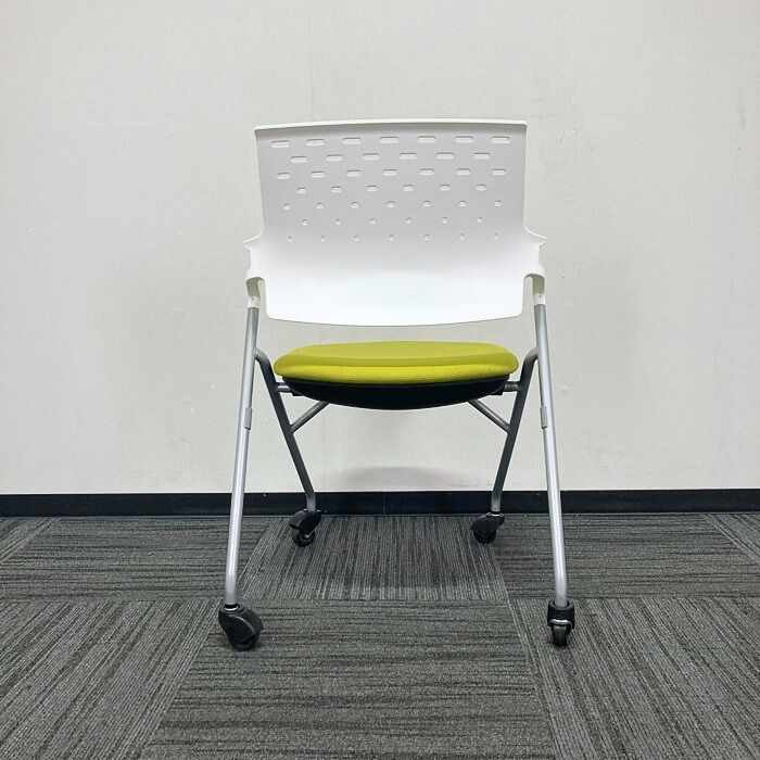 コクヨ ピエガシリーズ ネスティングチェア[ゴムキャスター] CK-720PAWG4Q4 背:ホワイトシェル/座:ライトオリーブ/脚:シルバー 2017年製 中古 ⑩
