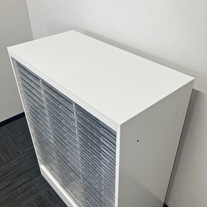 イトーキ シンラインシリーズ クリスタルトレイ[B4対応/浅型33段/深型15段] HTM-109KBL-W9 W900×D450×H1118 ホワイト 2016年製 中古