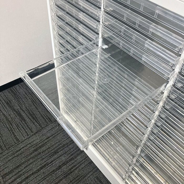 浅型トレイが33段、深型トレイが15段と用途に合わせた使い分けが可能です。