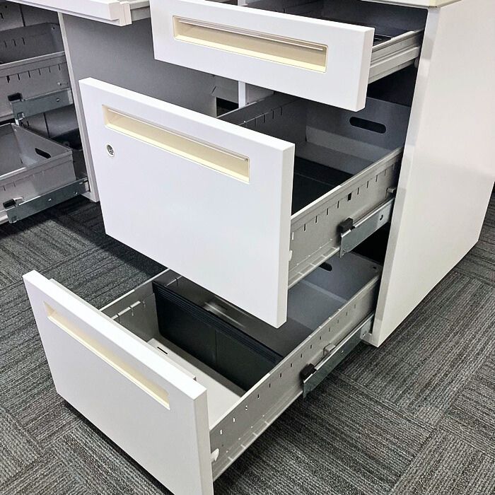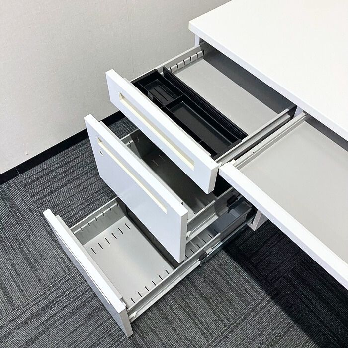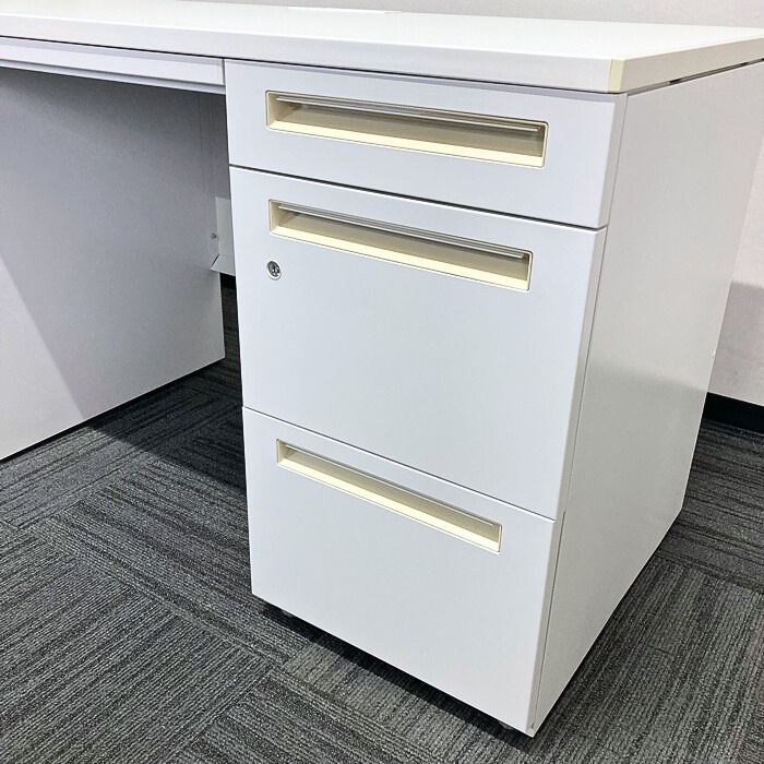 内田洋行 スカエナデスクシステム[Stype]シリーズ 両袖デスク 型番:5-110-6600 W1400×D700×H720 天板:ピュアホワイト/本体:オフホワイト 2013年製 中古 ⑳