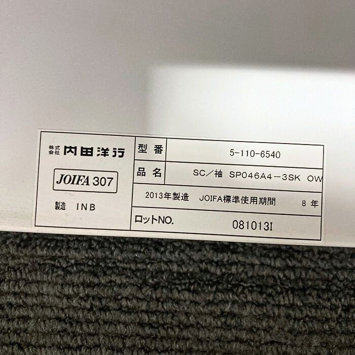 内田洋行 スカエナシリーズ 3段脇机 型番:5-110-6540 W400×D700×H720 オフホワイト 2013年製 中古 ⑩