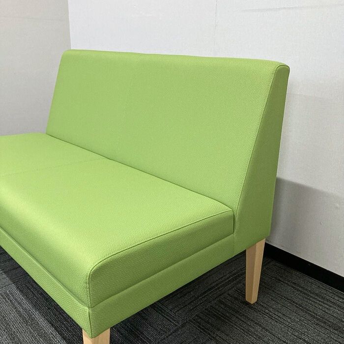 イトーキ UKシリーズ 2連ロビーチェア LUK-02C-97L7 張地:ピーグリーン/脚:クリア 2022年製 中古 ⑩