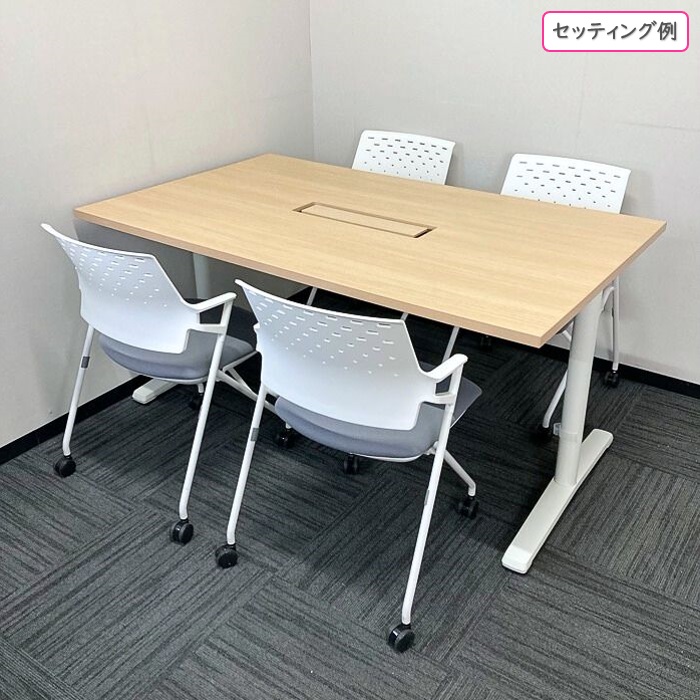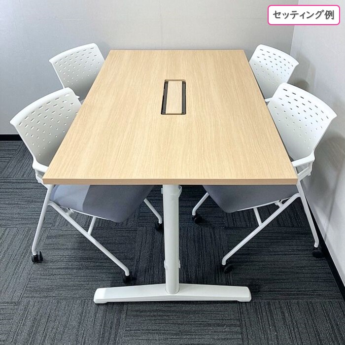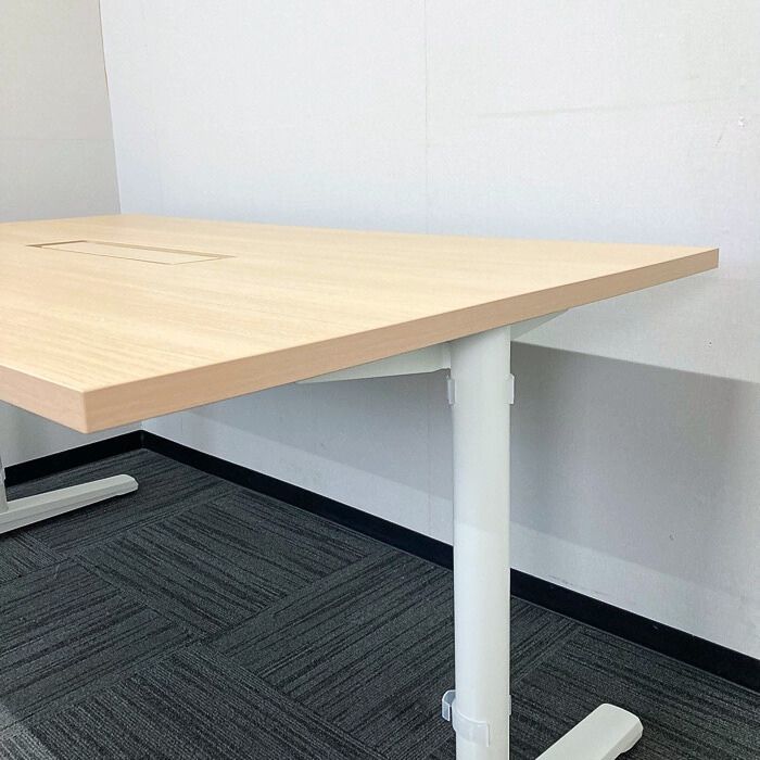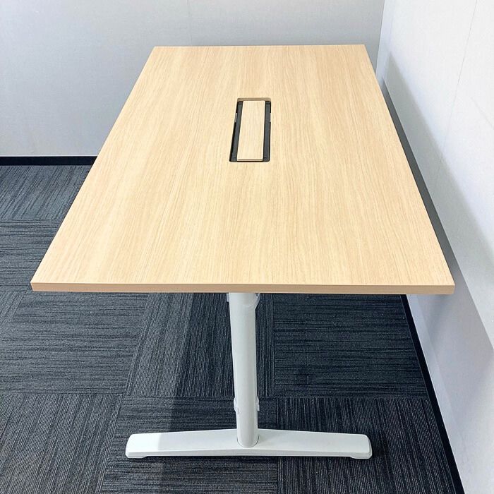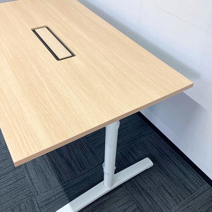 オカムラ ライブスシリーズ ミーティングテーブル[配線孔付] 87AFML MDA8 W1500×D900×H720 天板:ネオウッドライト/脚:ネオホワイト 2022年製 中古