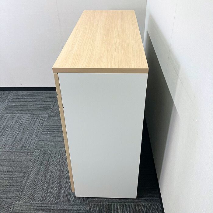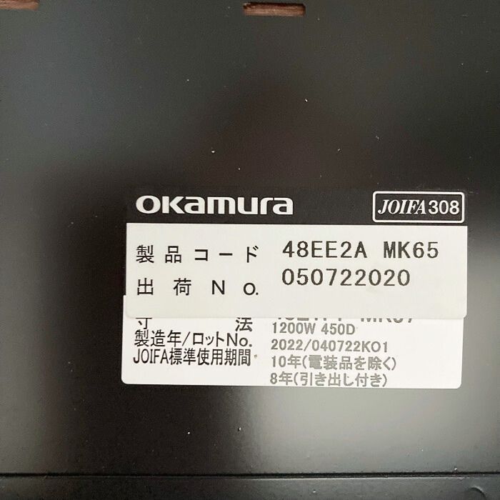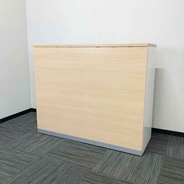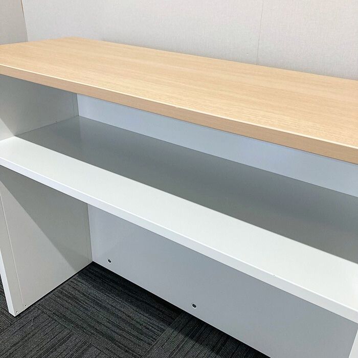 オカムラ SEカウンターシリーズ ハイカウンター 48EE2A MK65 W1200×D450×H1000 天板・前面パネル:ネオウッドライト/本体:ネオホワイト/巾木:スキップシルバー 2022年製 中古