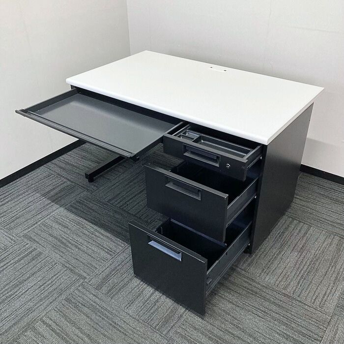 プラス SHシリーズ 片袖デスク SH-T127 WH W1200×D700×H700 天板:ホワイト/本体:ブラック 2019年製 中古