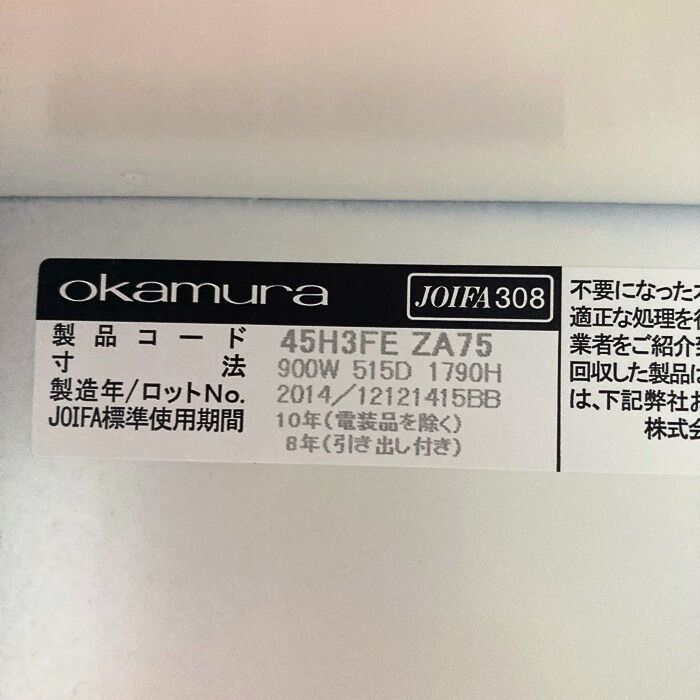 オカムラ FZタイプシリーズ 3人用ロッカー[ダイヤル錠] 45H3FE ZA75 W900×D515×H1790 ネオホワイト 2014年製 中古