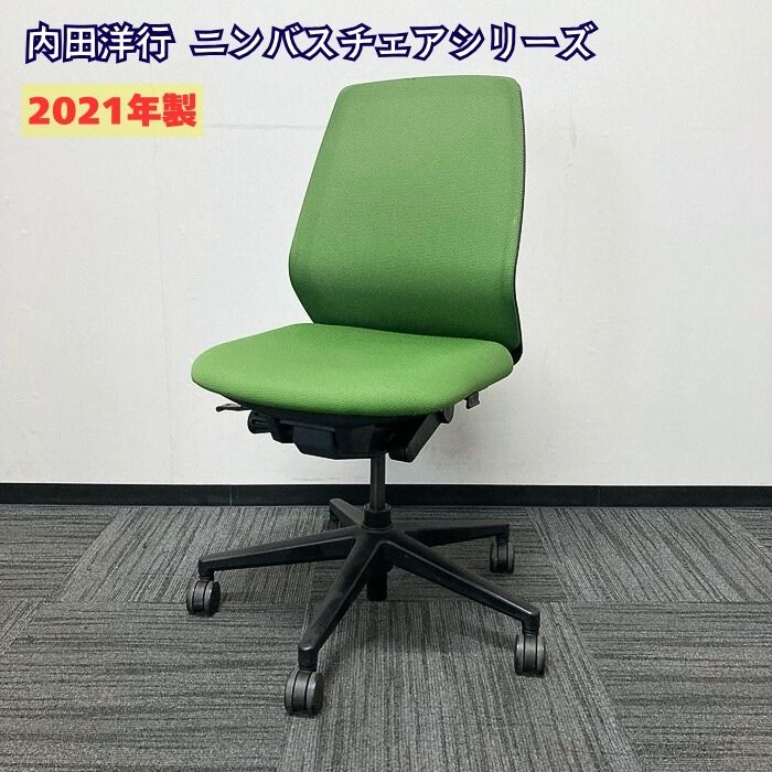 内田洋行 ニンバスチェアシリーズ オフィスチェア NA-00B ミドルバック 背座フォレストグリーン/ブラックフレーム 2021年製 中古 ※SALE品