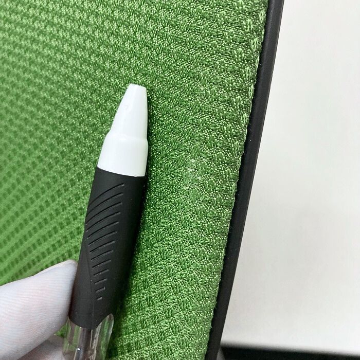 背もたれの一部に小さなほつれや黒ずみ、擦れなどあり。